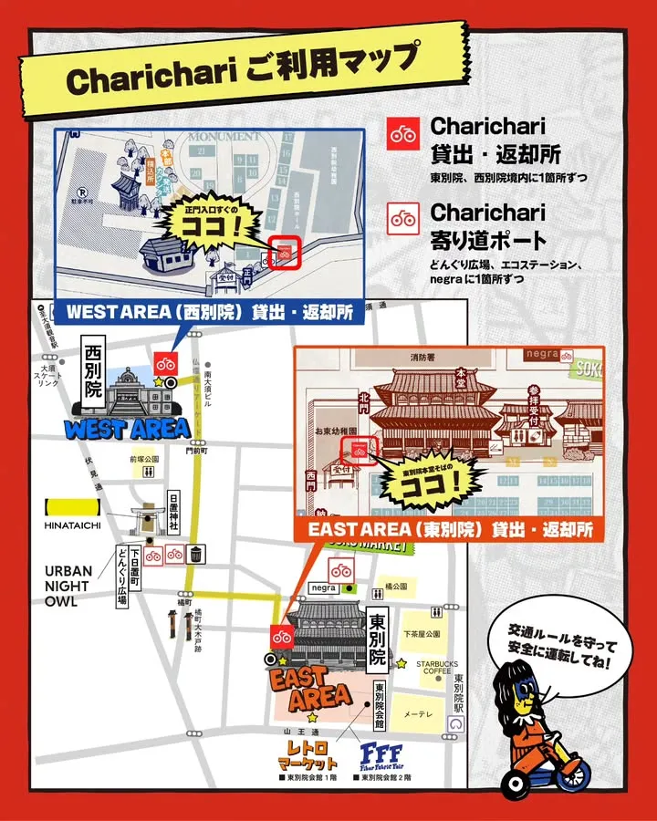 ・東西別院にある受付で保証金500円をお支払いいただき、乗車チケットをお受け取りください。